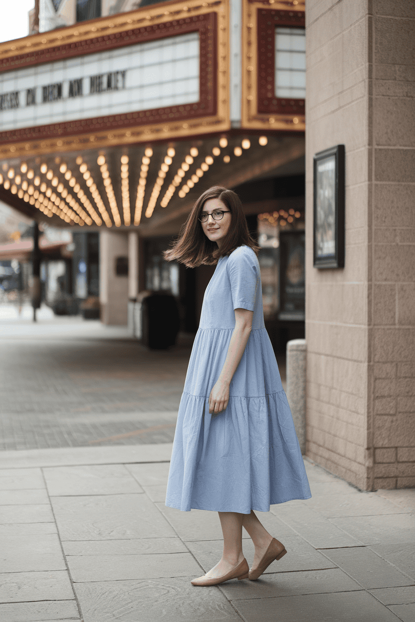 A light cardigan or denim jacket comes in handy if the theater’s cold. Comfy shoes like ballet flats or clean sneakers let you stroll before or after the movie.