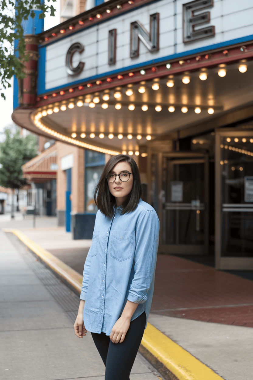 If the theater’s cold, just toss the chambray shirt over a basic tee like a light jacket. You’ll stay cozy through the whole movie.