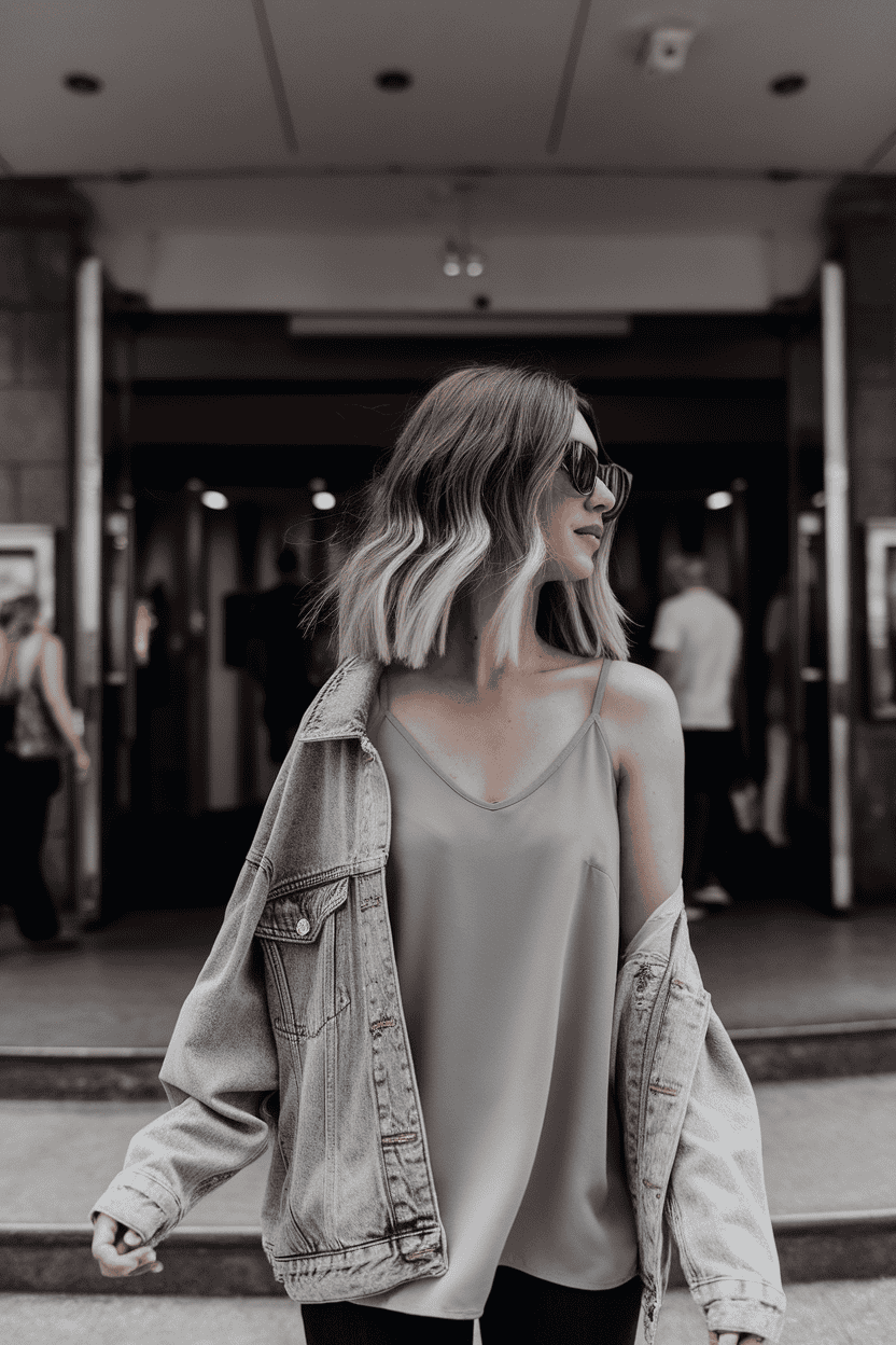Try a flowy tank top under a denim jacket for a relaxed but stylish look. The tank keeps you cool, and the jacket adds warmth and a bit of edge.