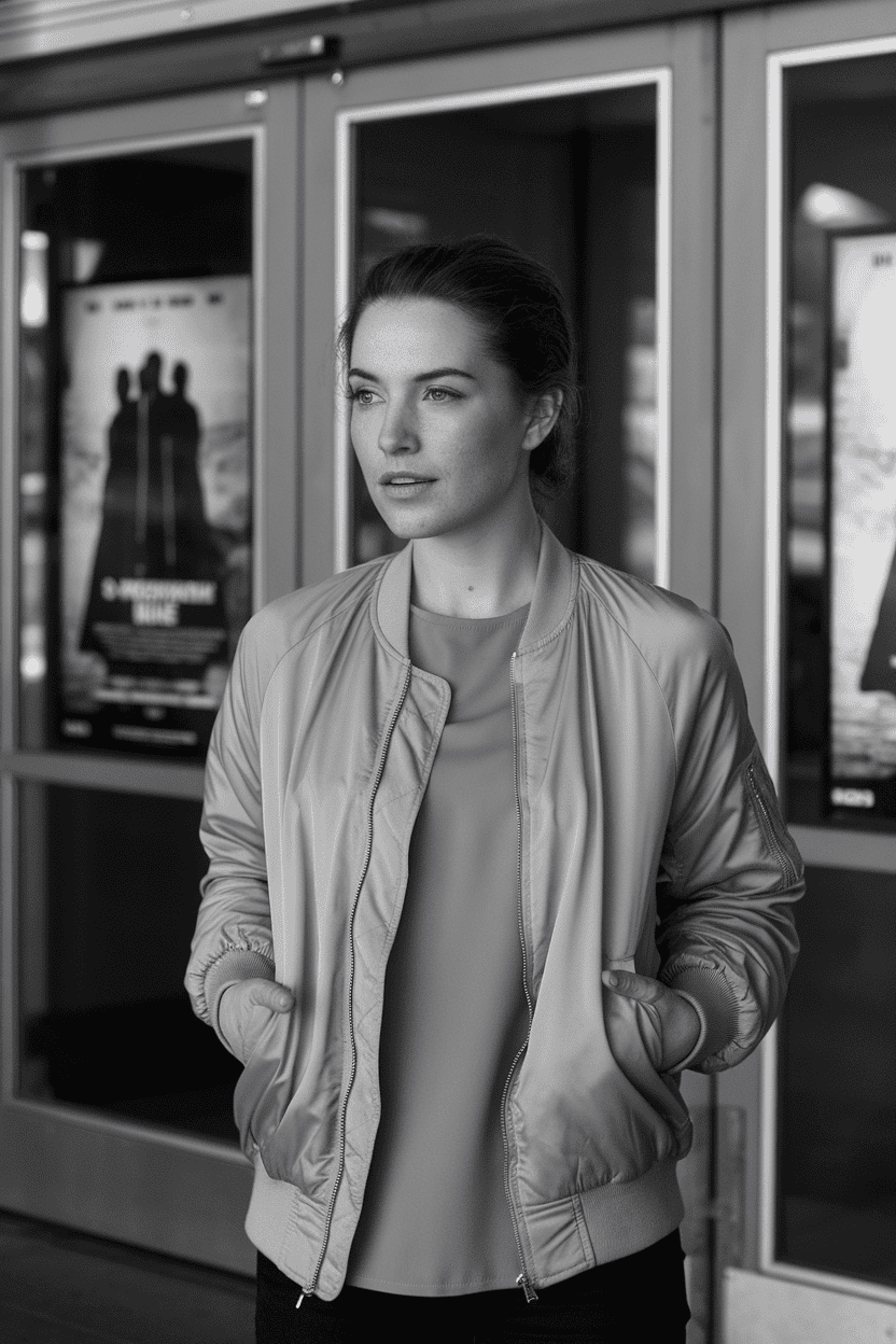 A light bomber jacket over a plain tee just works for movie dates. It’s simple, stylish, and keeps you comfortable if the theater’s chilly.