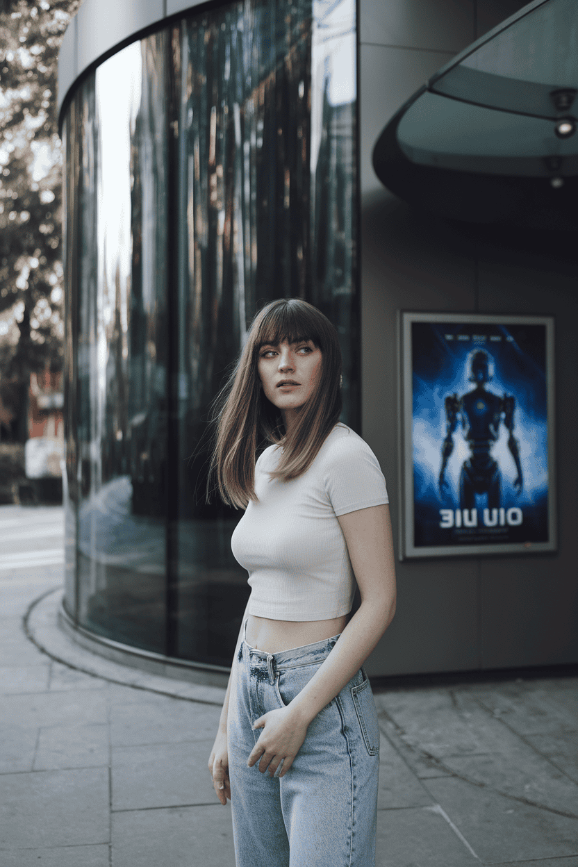 Pair a crop top with loose-fit jeans for a comfy and cool movie night. It’s relaxed but still feels put together.