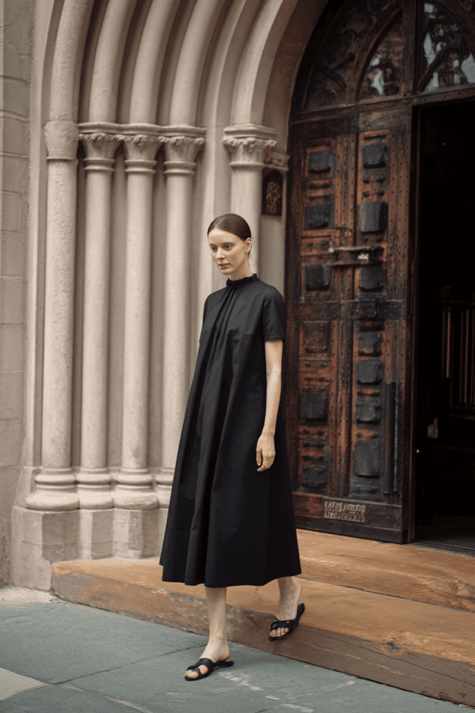 A simple black midi dress is always a safe bet. It’s modest, respectful, and you won’t feel out of place.