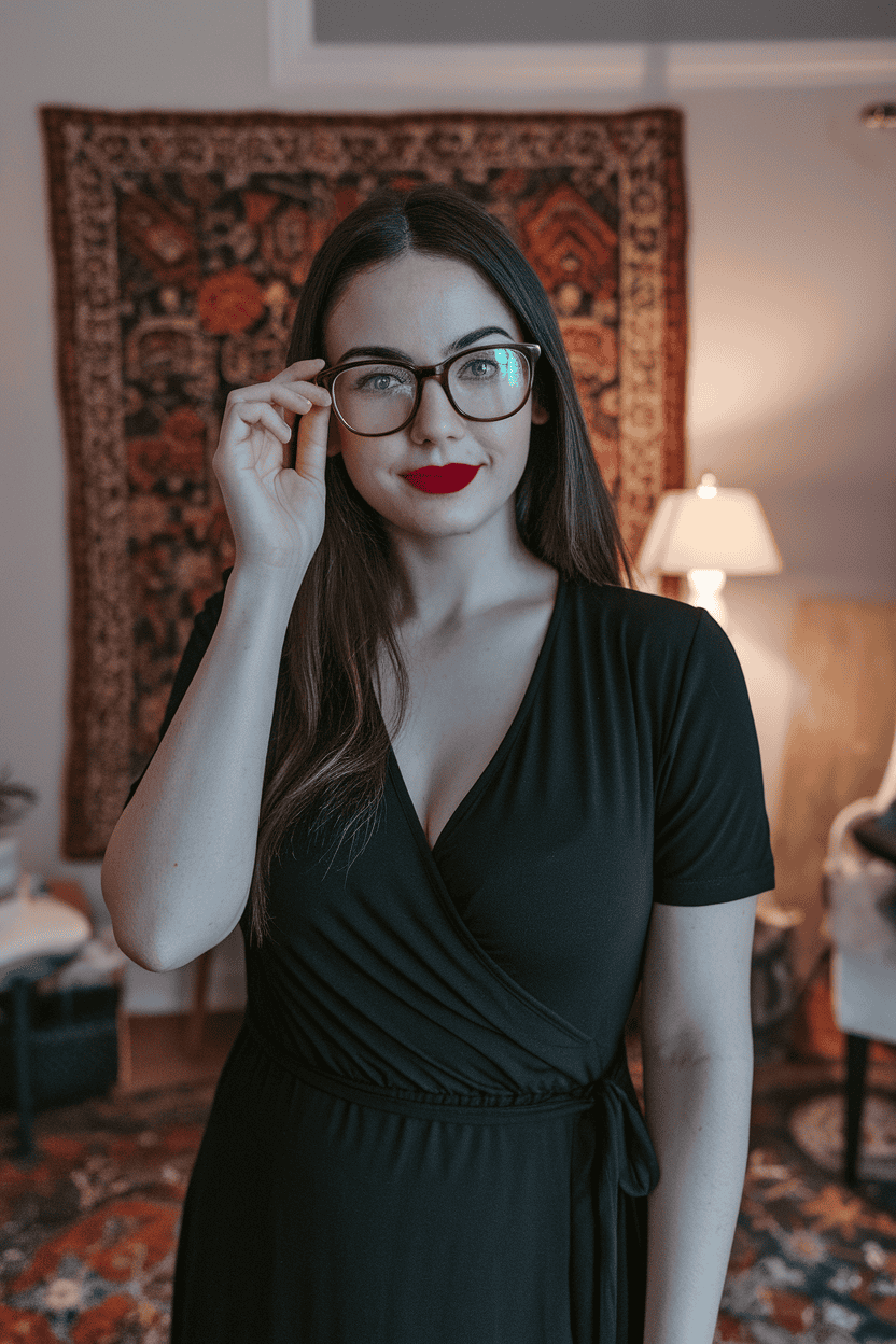 Bold red lipstick and a little black wrap dress