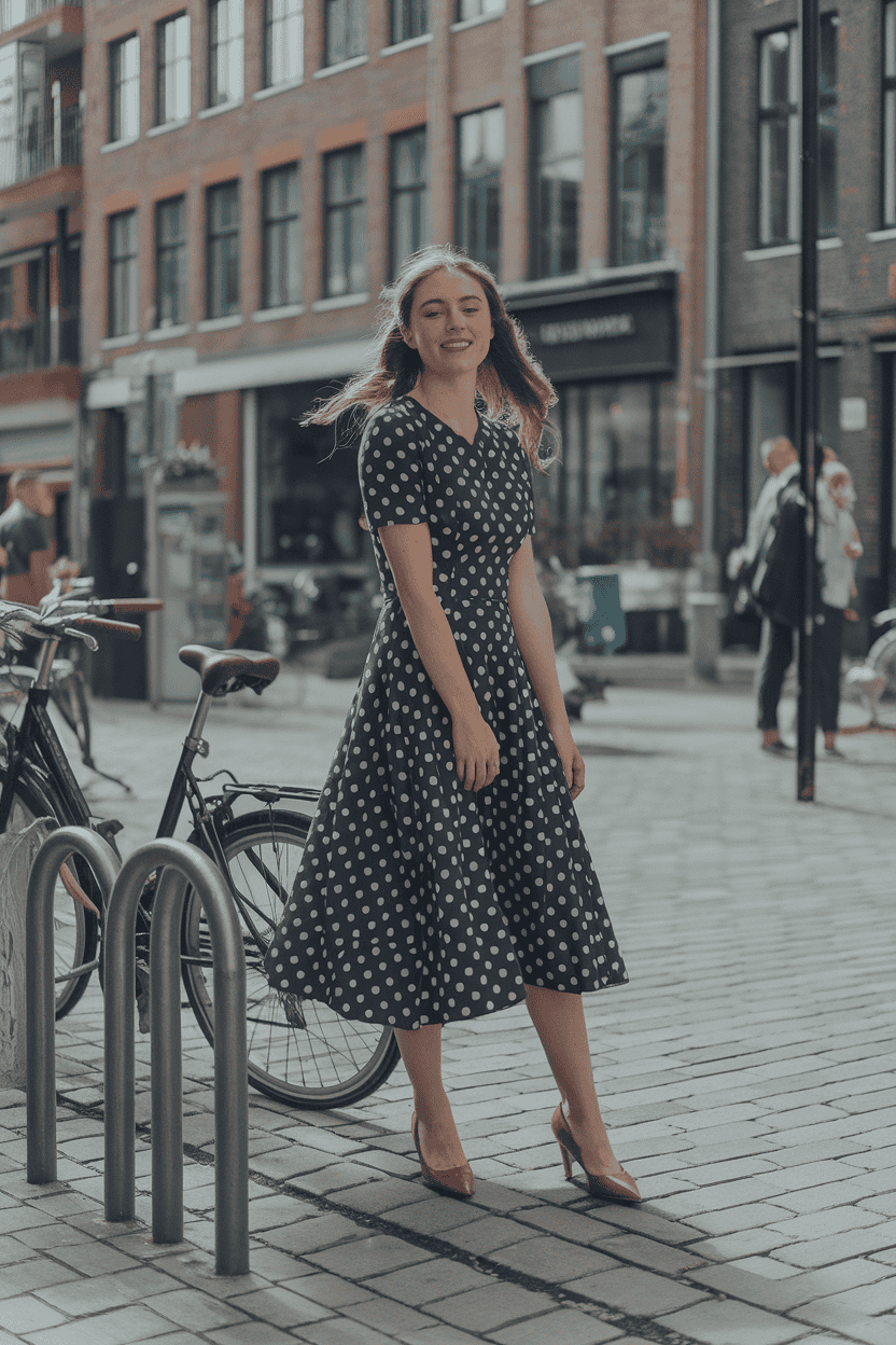 Polka dot dress with retro pumps