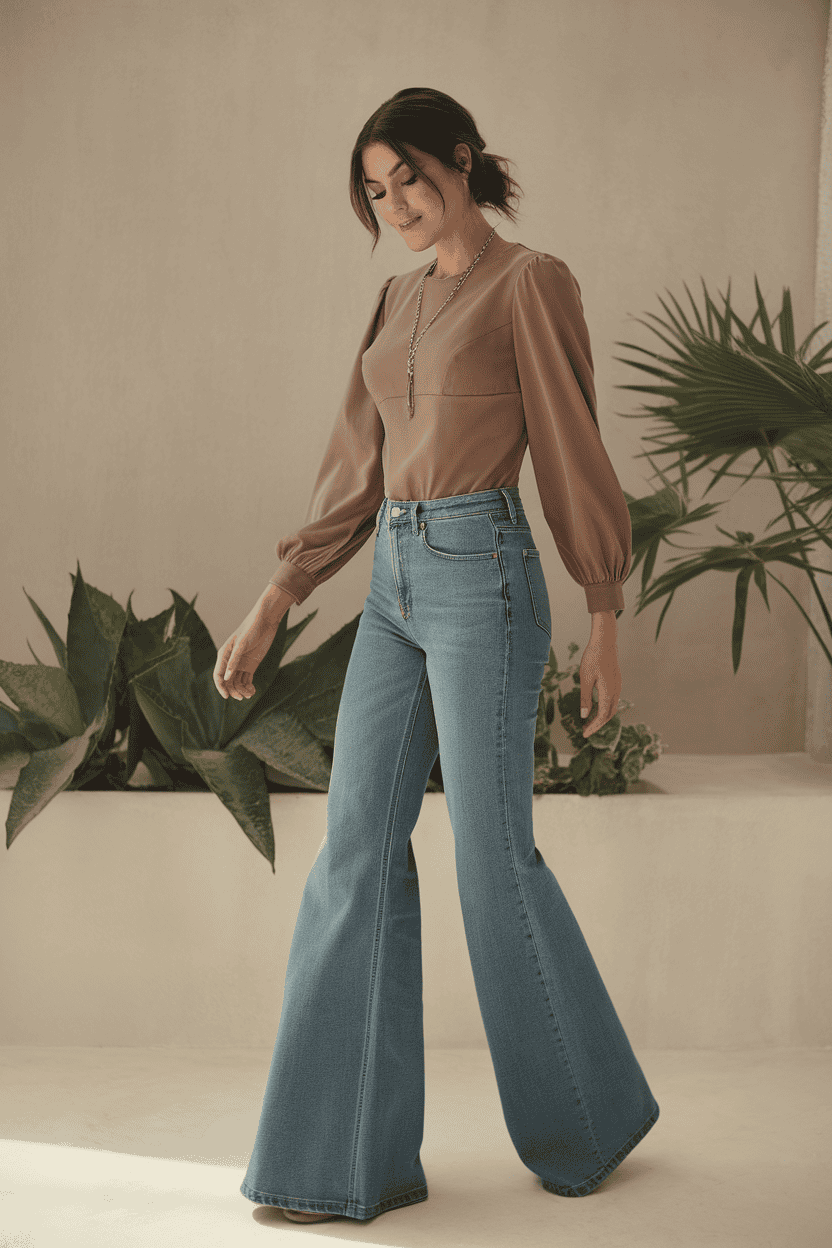 Retro flared jeans with a fitted blouse