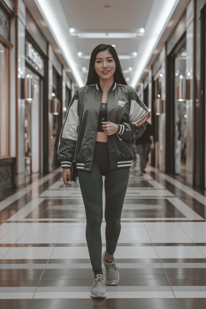 Pair a sporty bomber jacket with seamless leggings for a casual, slightly edgy look. The bomber brings a bit of attitude while keeping you comfortable.